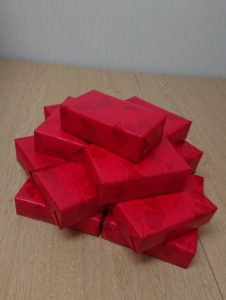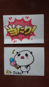 平均年齢がやや若返ったものの、ほぼおじさん達のわが社にもバレンタインがやってきました。 おばさん達からのチョコレートは・・・ 今年もやっぱりくじ付きです。 単なるチョコだけではおじさん達は喜びません。 残念くじをひいたおじさん達は、来年の年明けお年玉じゃんけんでリベンジしてください。