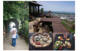 電車に乗って友達とランチするのも久しぶりです。目指すは生駒の宝山寺近くにあるピザ屋の雲亭さんです。わが社の看板犬をバックプリントしたTシャツを着て、会社から電車で生駒駅を経て徒歩で宝山寺近くの雲亭さんまで背中で広報活動です。